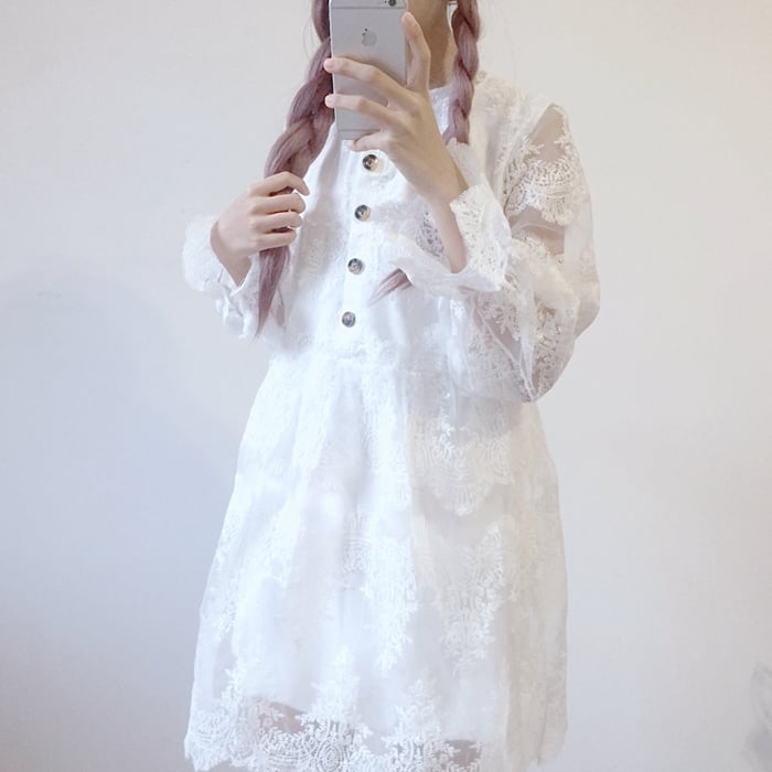 One free size Measures: (dress) length 83 cm, bust 94 cm, shoulder 36 cm, sleeve 58 cm