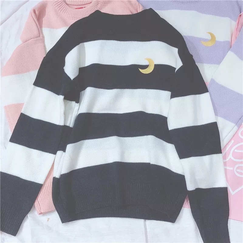 Super cute moon embroidery sweater. Great for wknter, choose from 3 colors.