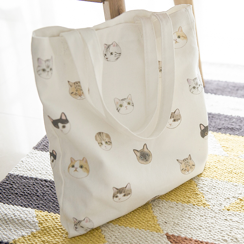 Cat monogram canvas tote bag. Use this cute bag to shop! Great gift for cat lovers!