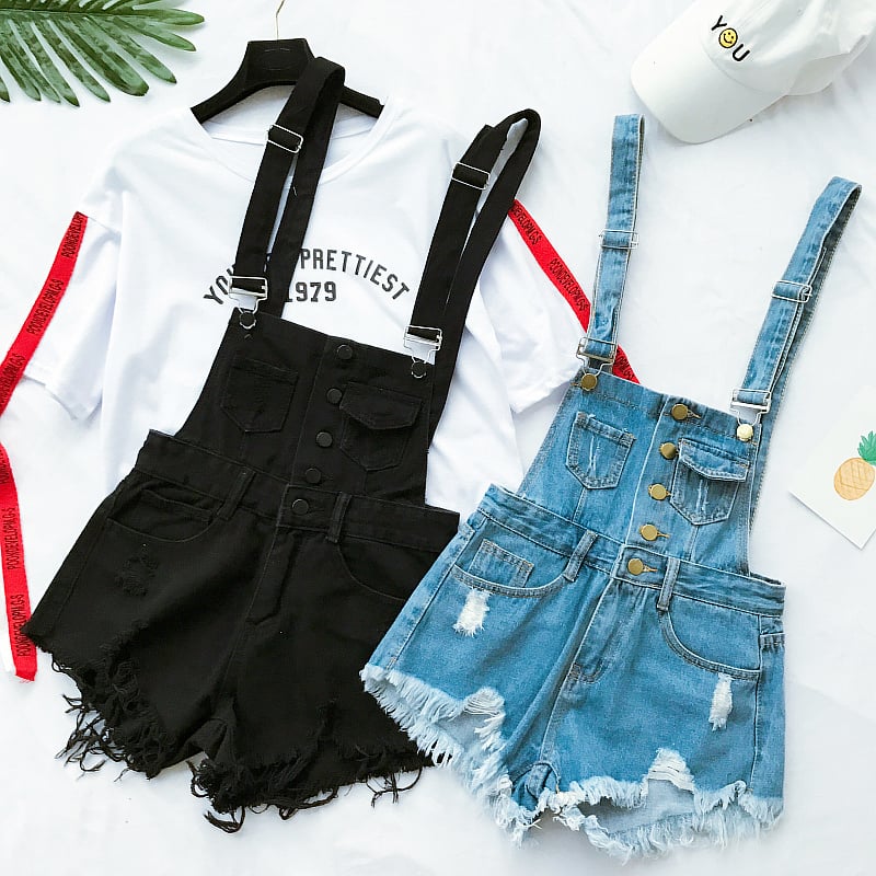 Button up loose comfortable Korean style overall shorts.