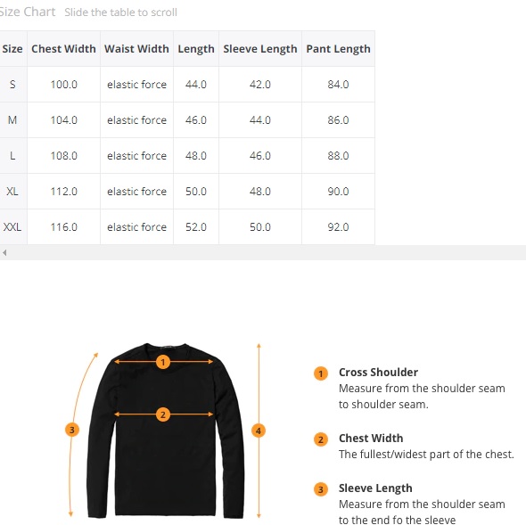 Measurements: Please refer to size chart below