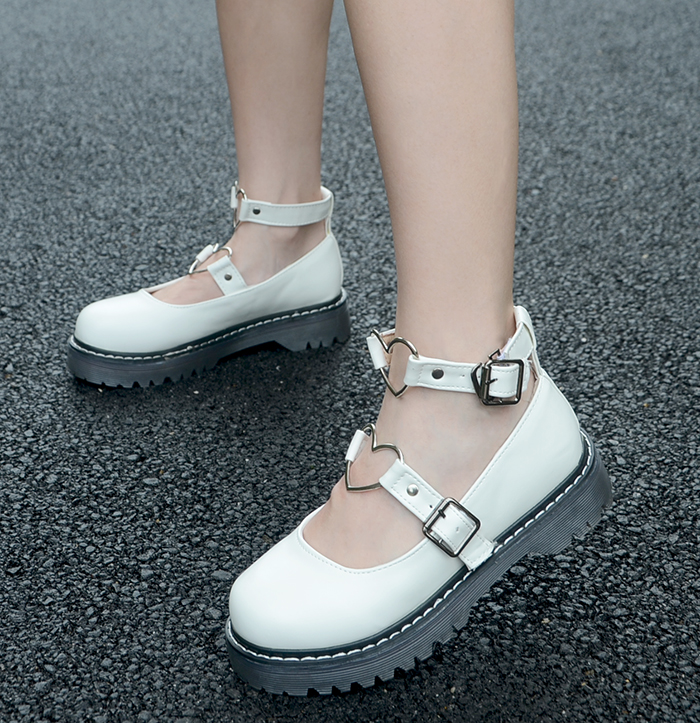 These shoes are gothic and retro style lolita flats with 2 heart ring straps.
