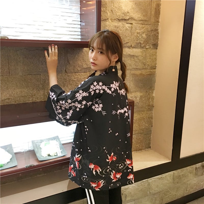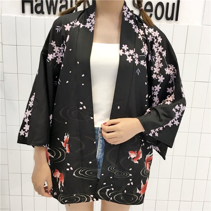 Goldfish and flowers Kimono jacket