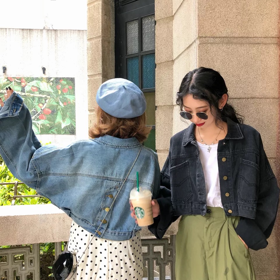 Cropped denim jacket is back this fall! Choose from blue/black.