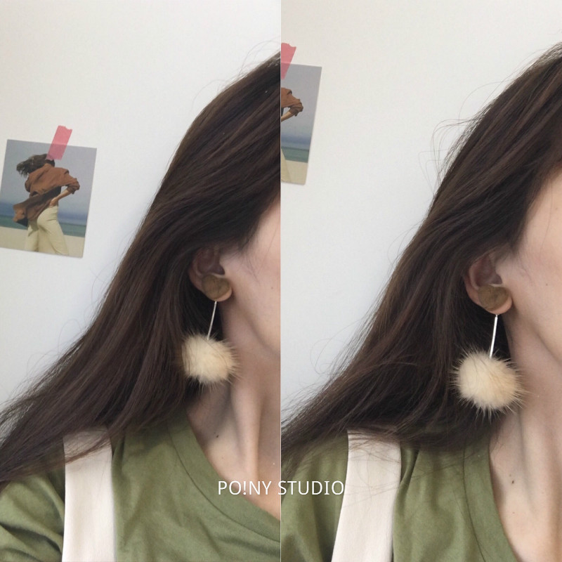 Winter cute pom pom dangle earrings made of velvet.