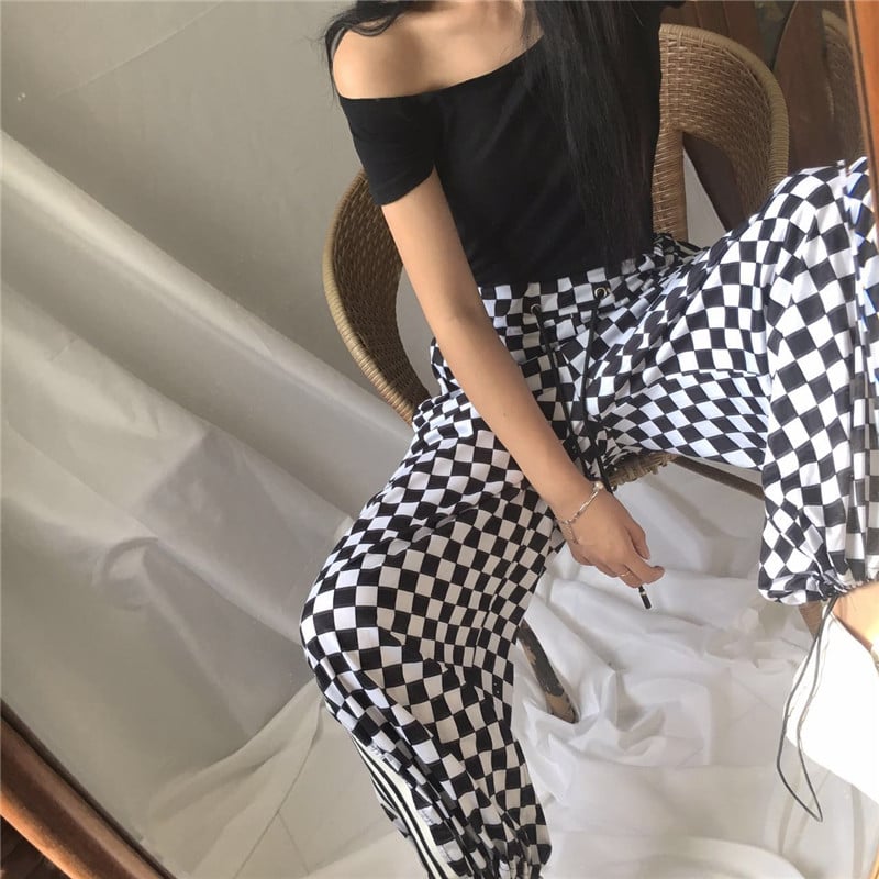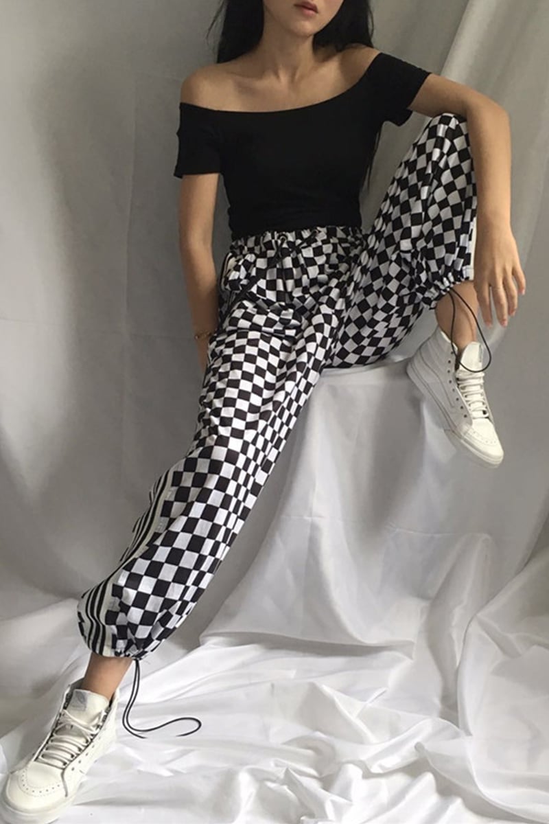 Checkered plaid sports pants