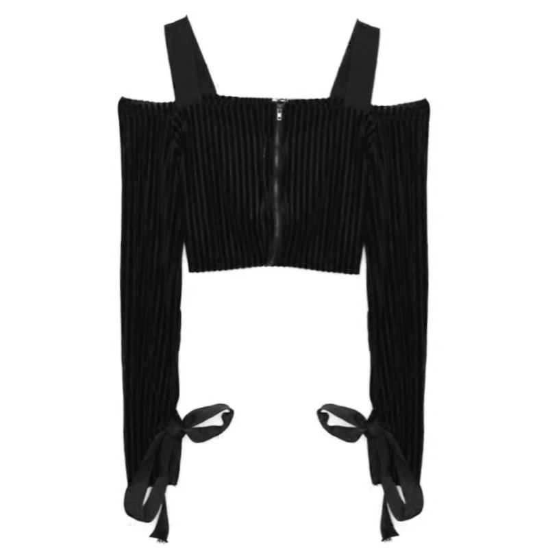 Look sexy in this warm spring with a full zipper cold shoulder long sleeve top.
