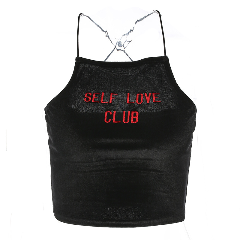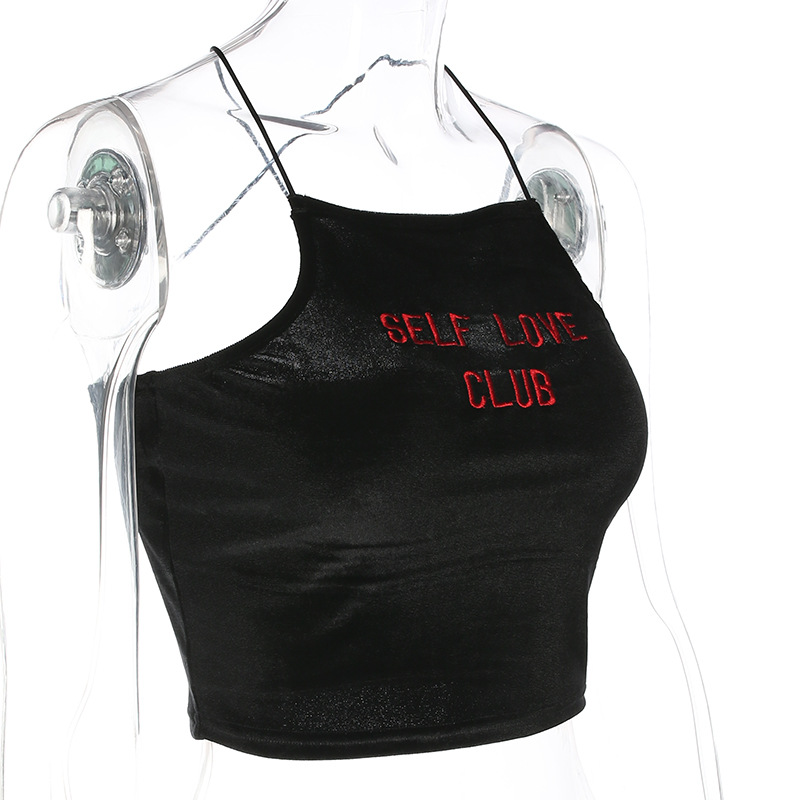 Sexy self love club embroidered velvet tank top. Show off your sexy body with this tank top this summer.