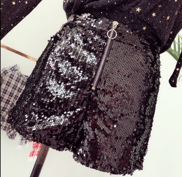 This is a super stylish chic style sequins black or silver shorts. Look hot with t his piece of clubwear this s ummer.