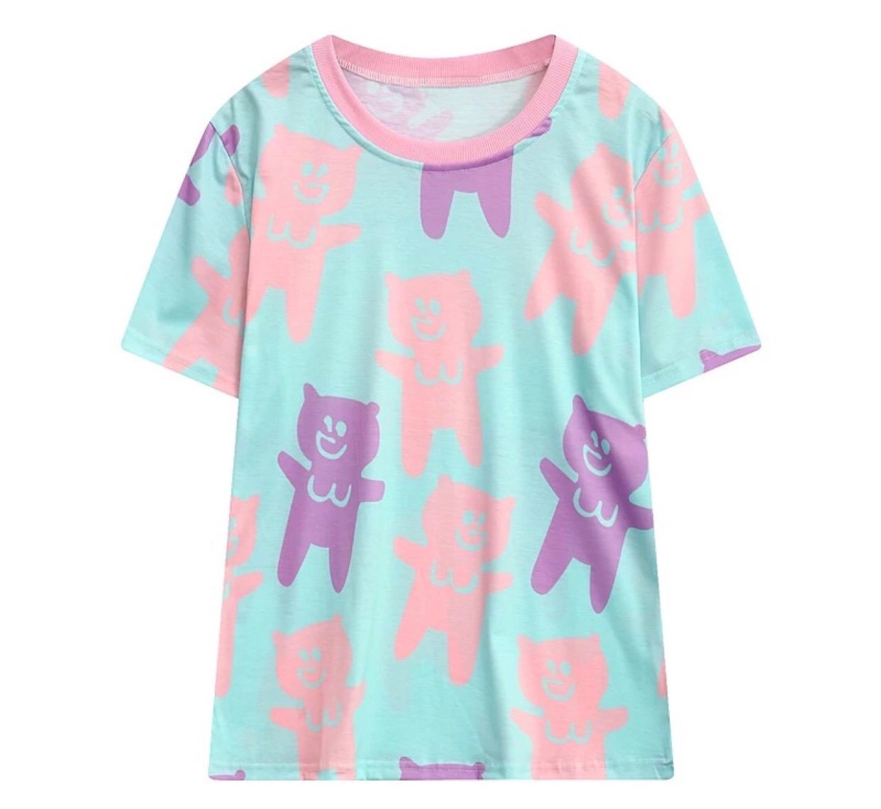 This colorful printed t-shirt comes in one free size and made of cotton blend.