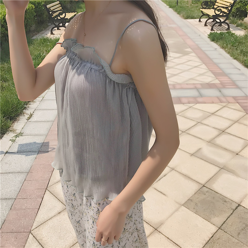 This chiffon tank top comes with extra slim straps for more cooling effect. To pis excellent for work or casual wear.