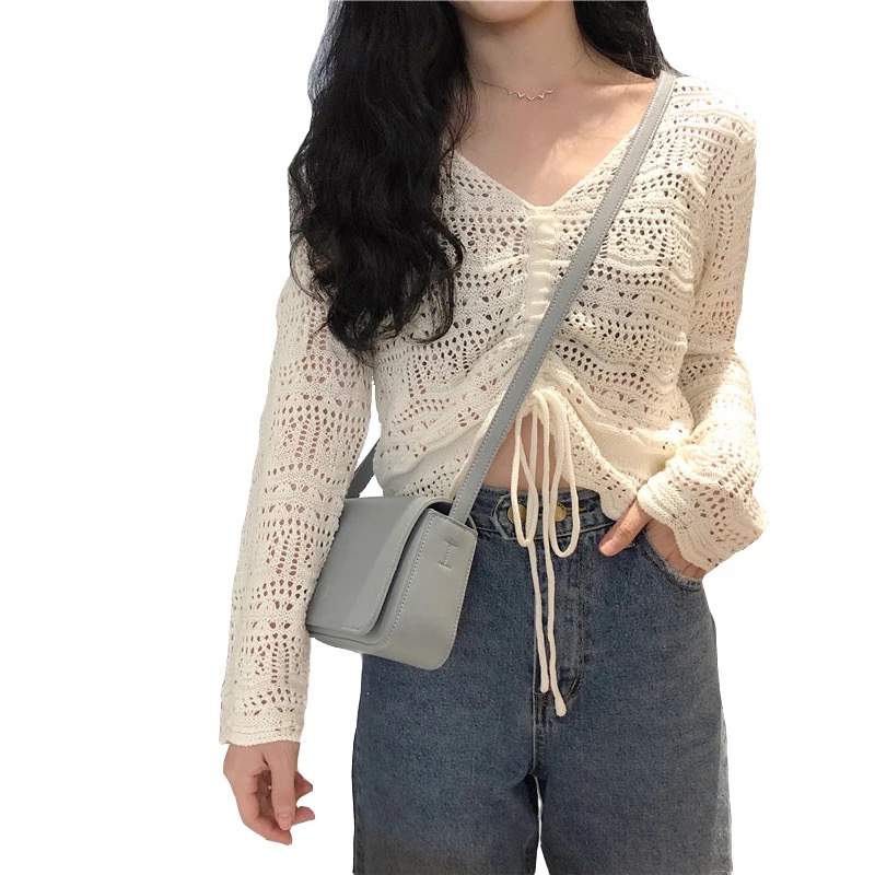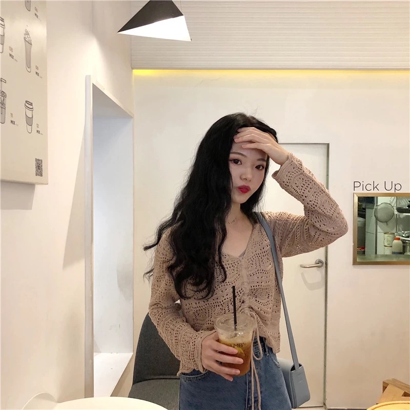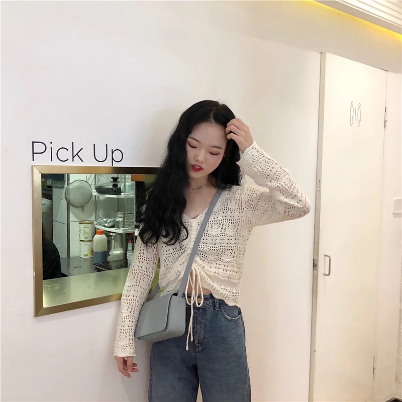 Sexy and elegant Korean style knitted top. Wear tank top inside.