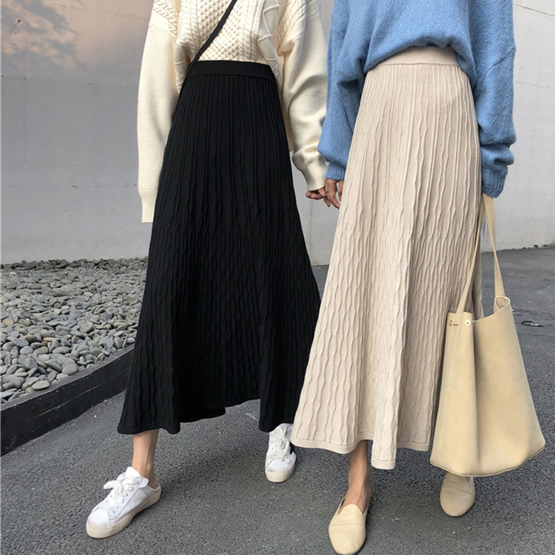 Long pleated knitted skirt