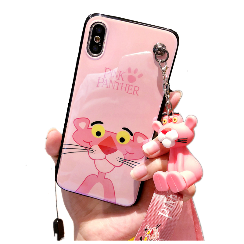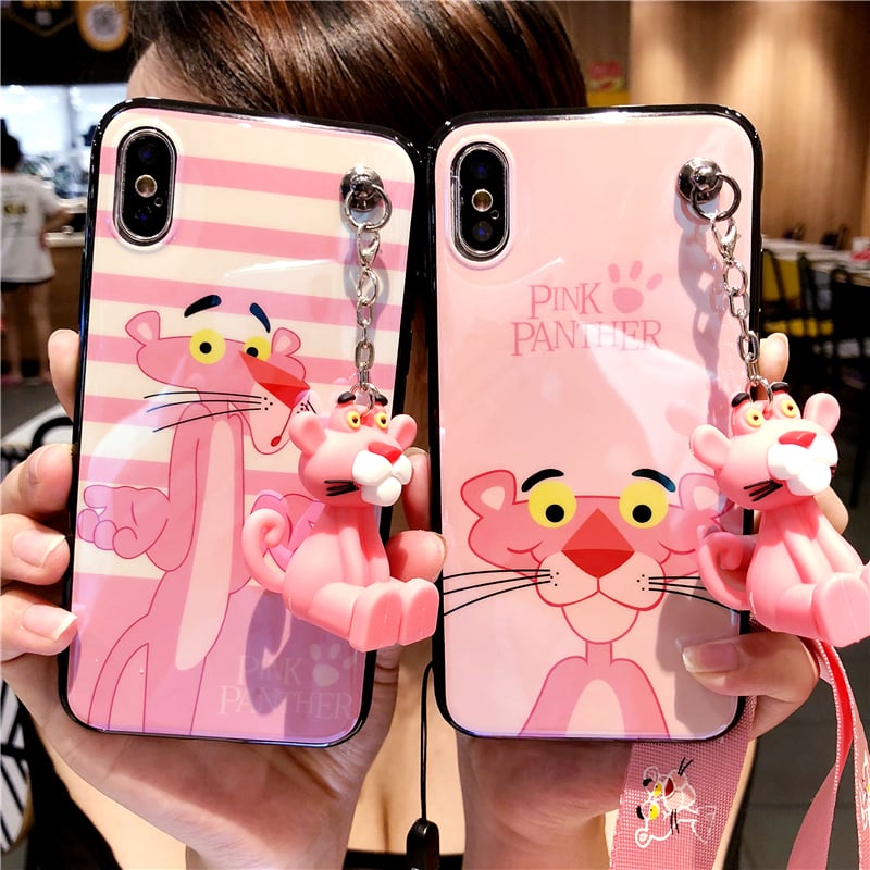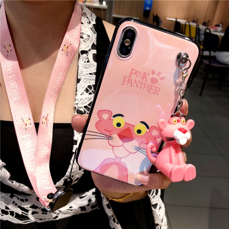 Pink panther glassy iPhone case with strap