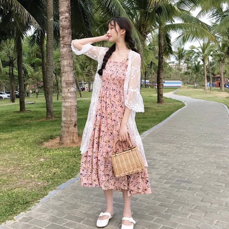Spring floral print one piece dress