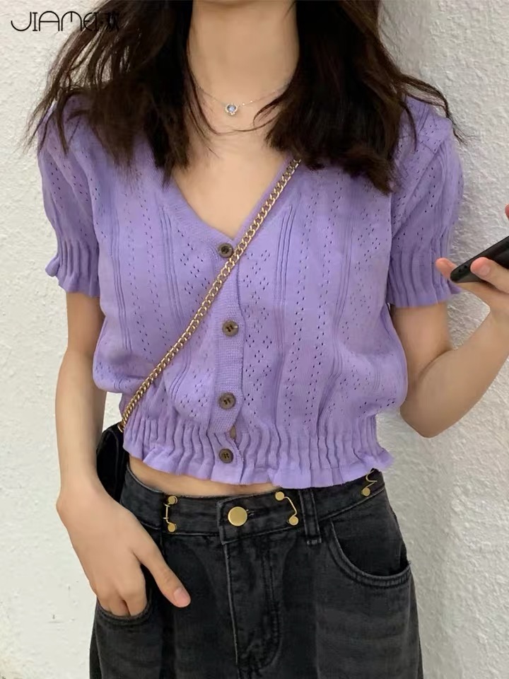 Knitted pastel button top