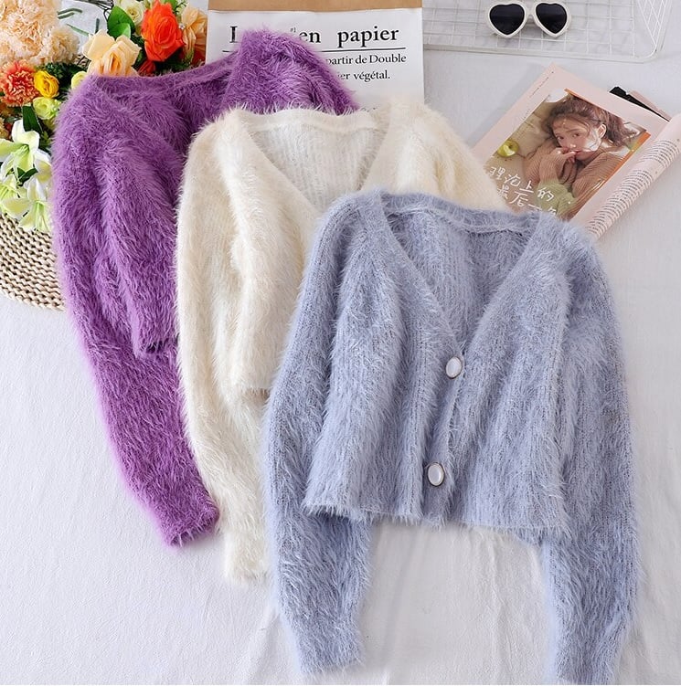 Fuzzy button up classy cardigan