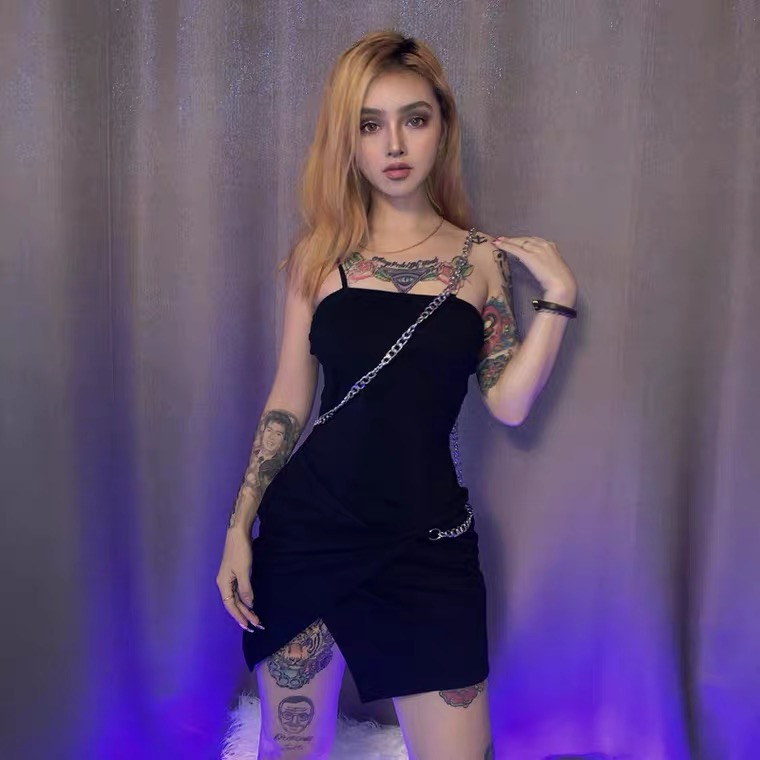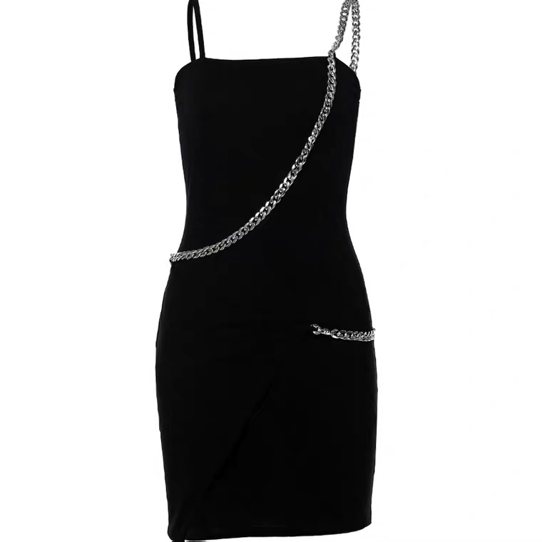 Chain me up black slim one piece dress