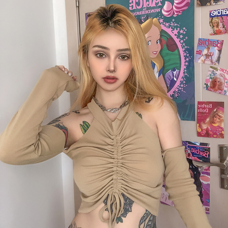 Halter neck sexy tank with separated sleeves
