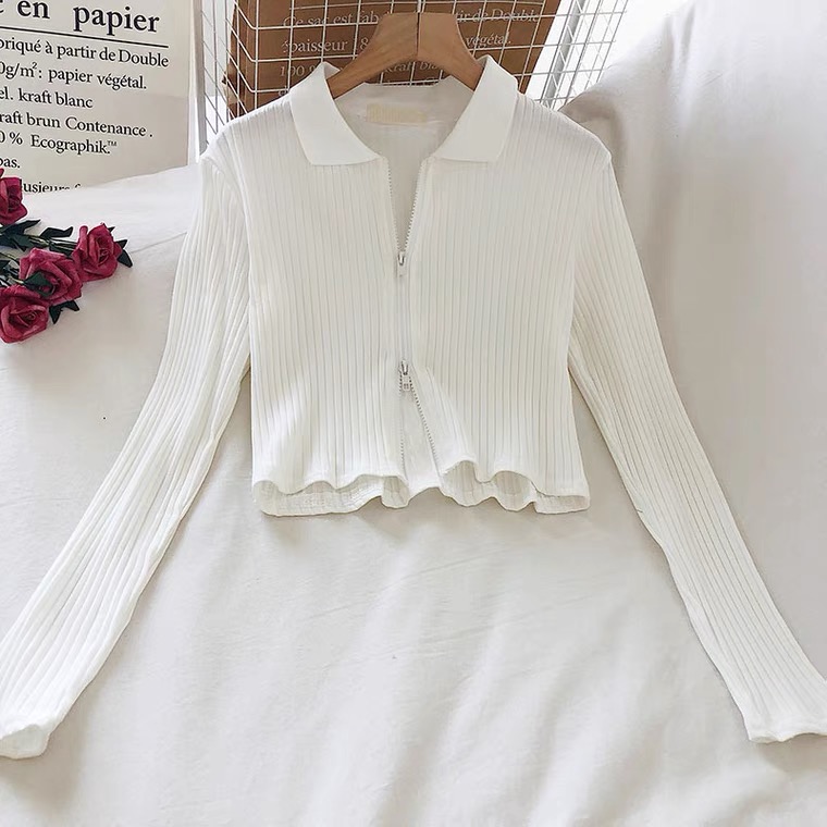 Zip up sexy Korean fall top